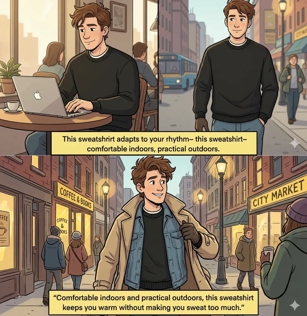 Yes, the sweatshirt is made from soft, breathable fabric for all-day comfort.