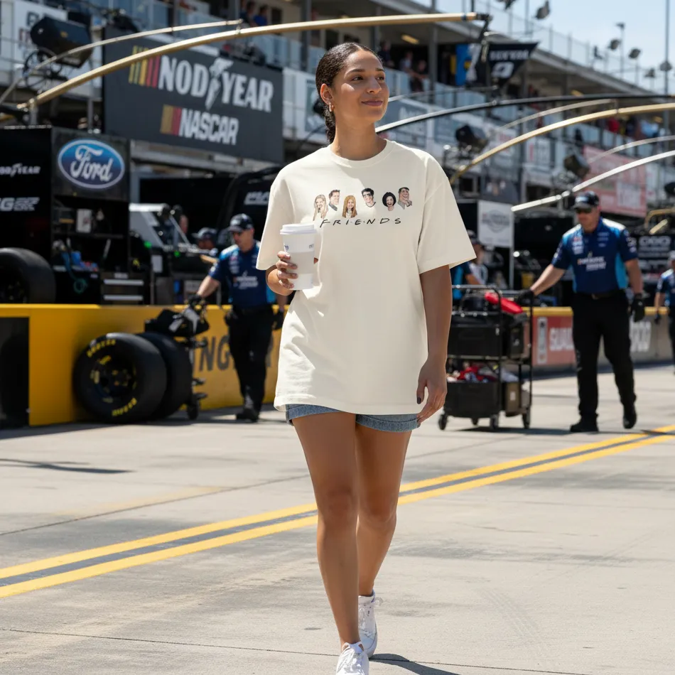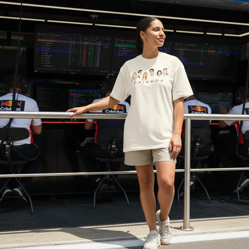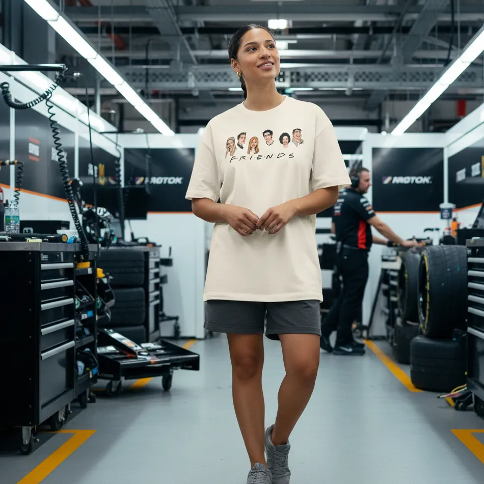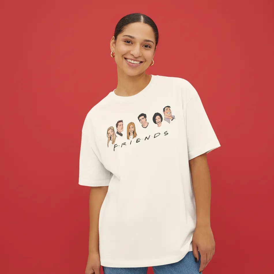 Celebrate friendship, laughter, and iconic TV moments with this Friends Show inspired beige oversized t-shirt featuring actors graphic. Designed for women who love the show, this t-shirt blends fandom emotion with comfortable streetwear styling.