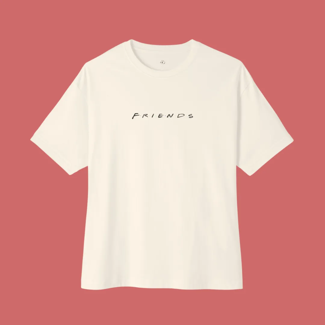 Celebrate your love for the Friends TV show with this beige oversized t-shirt for men and women featuring the iconic text graphic. Soft, breathable cotton fabric with a relaxed unisex fit, perfect for casual streetwear, TV show-inspired looks, and all-season comfort.