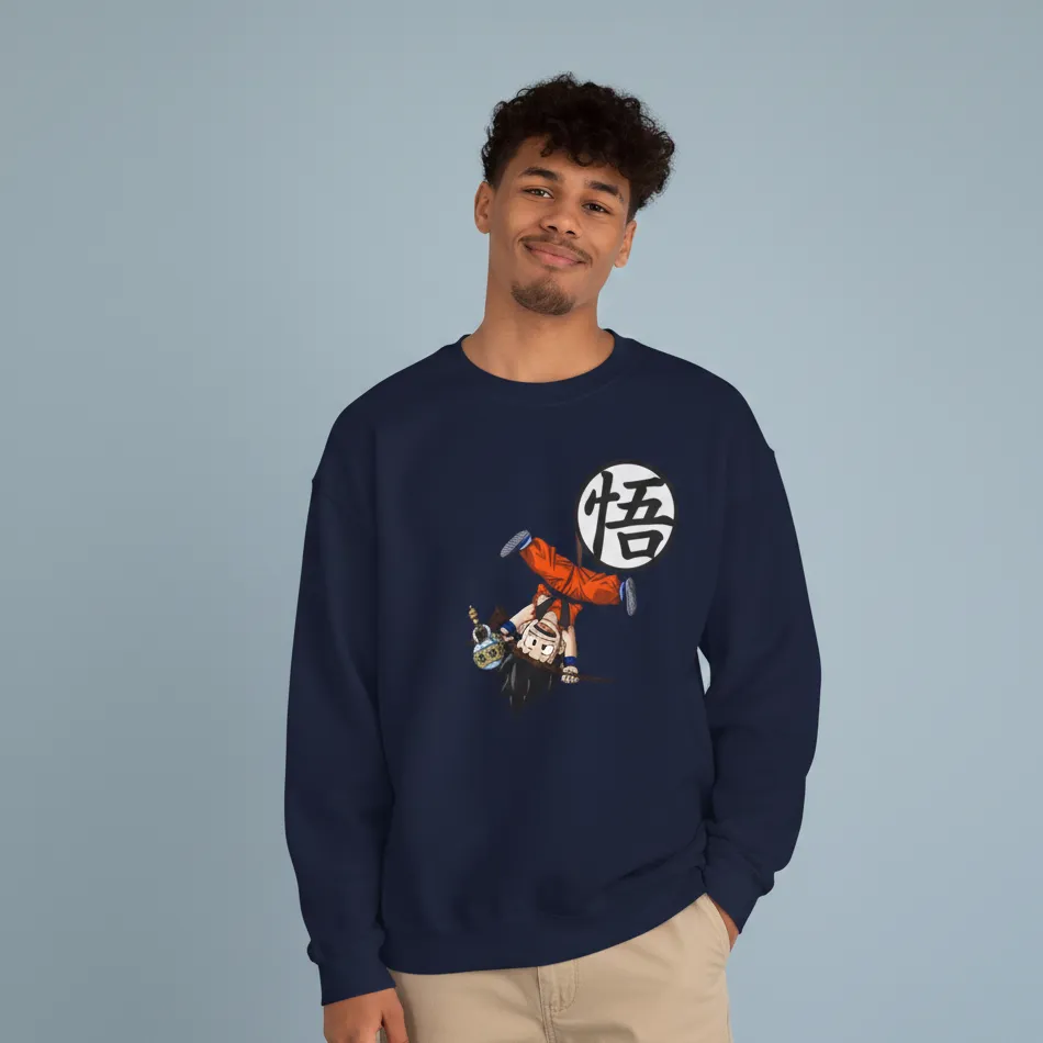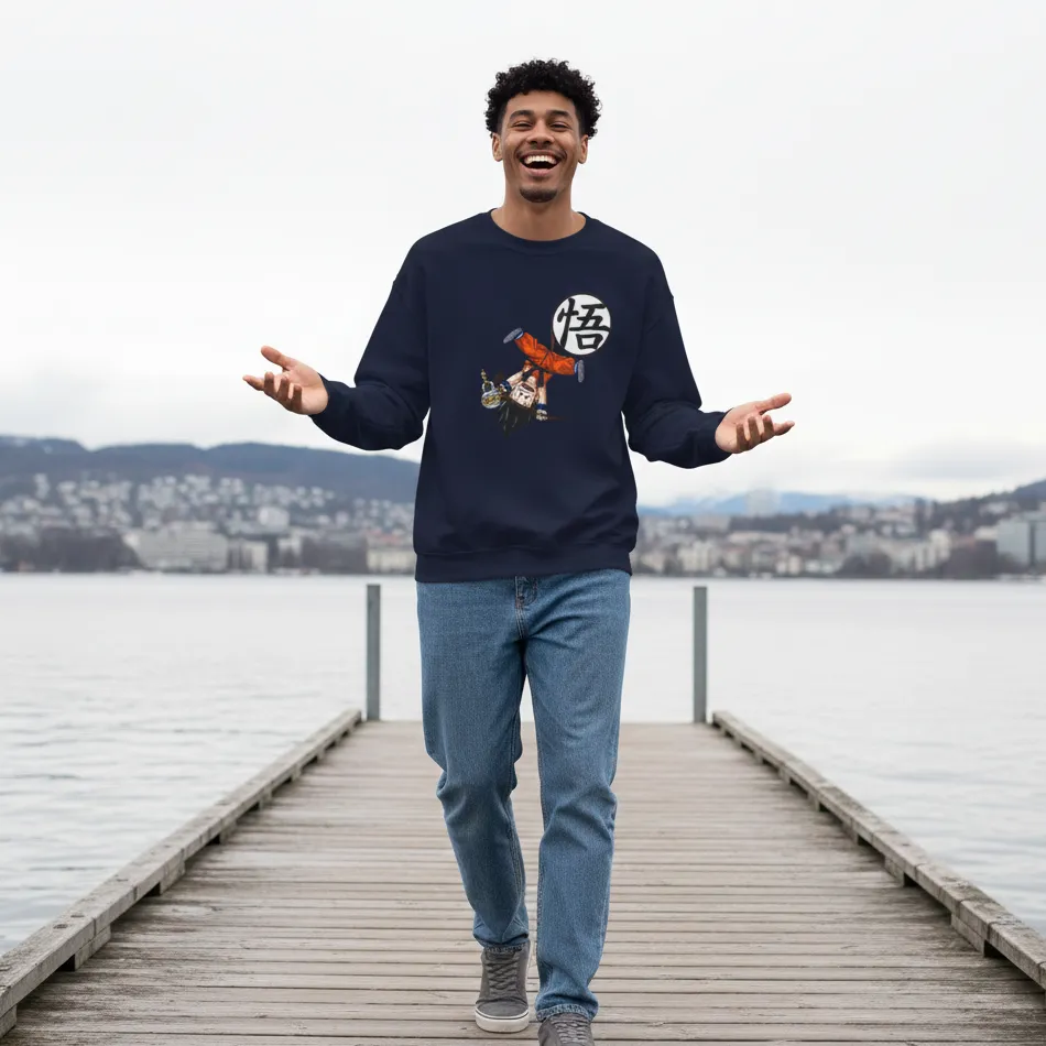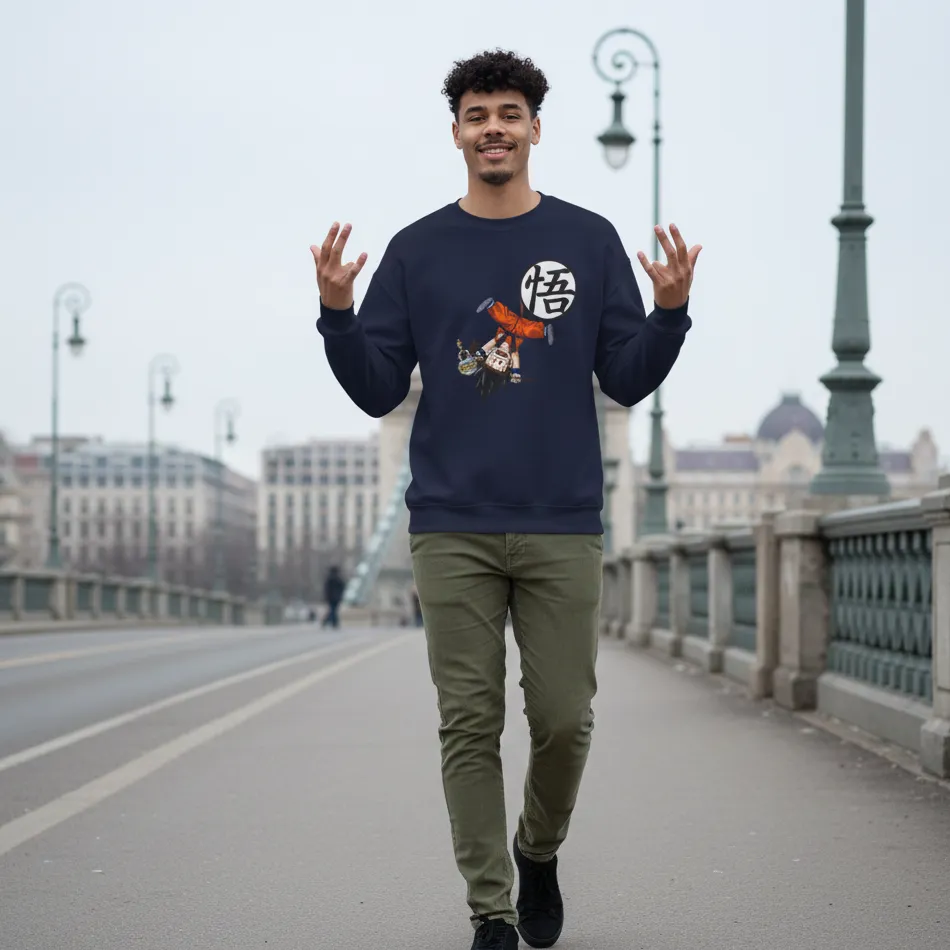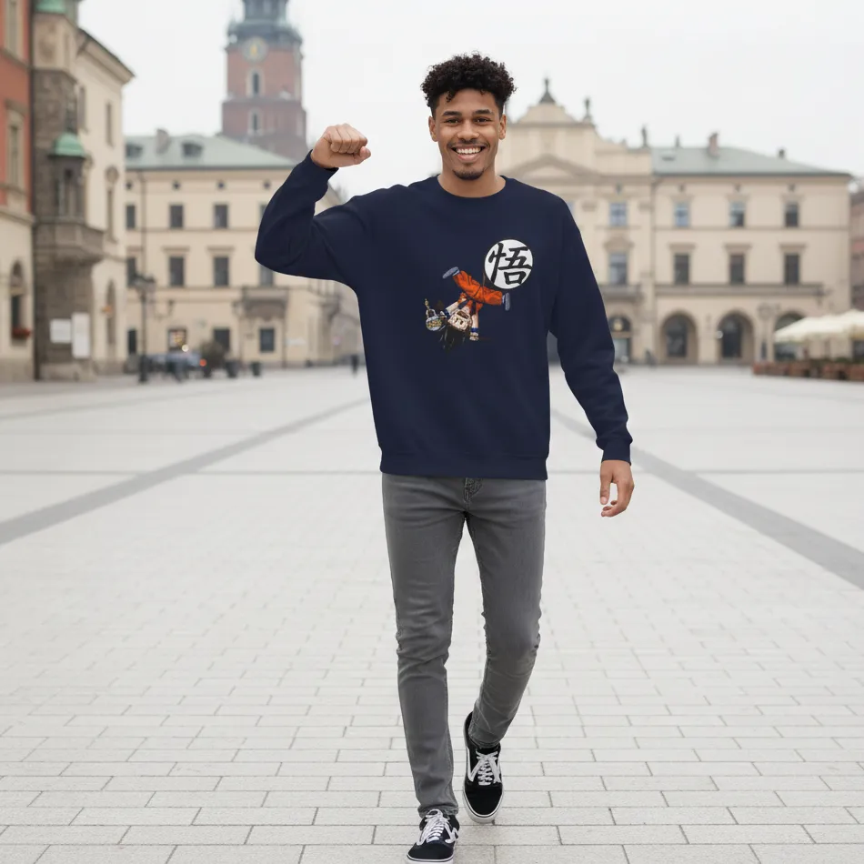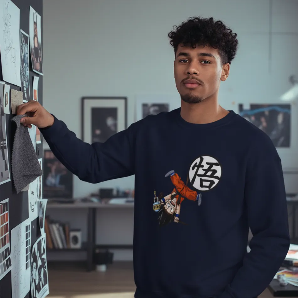 Goku inspired navy sweatshirt for men designed with a striking Dragon Ball Z graphic of the legendary character, combining iconic anime style with modern streetwear comfort.