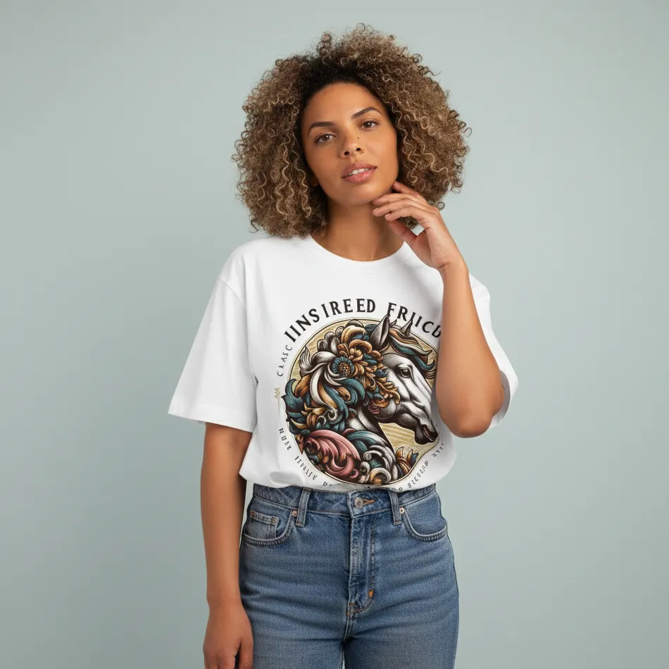 Inspired by the beauty and power of horses, this Horse inspired white oversized t-shirt for women celebrates freedom, strength, and grace. Crafted for those who appreciate elegance and streetwear style, this t-shirt is more than fashion — it’s a tribute to the majestic horse.