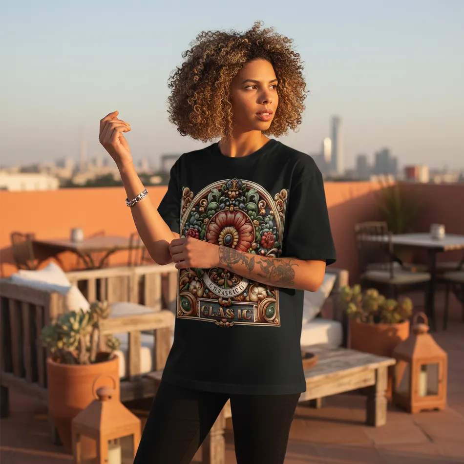 Inspired by the rich heritage of Indian Ancient Art, this Indian Ancient Art inspired black oversized t-shirt showcases a striking stone art graphic that blends history with modern fashion. Designed for women who appreciate culture and style, this tee brings timeless artistry into everyday wear.