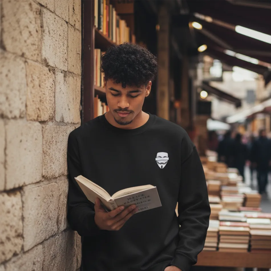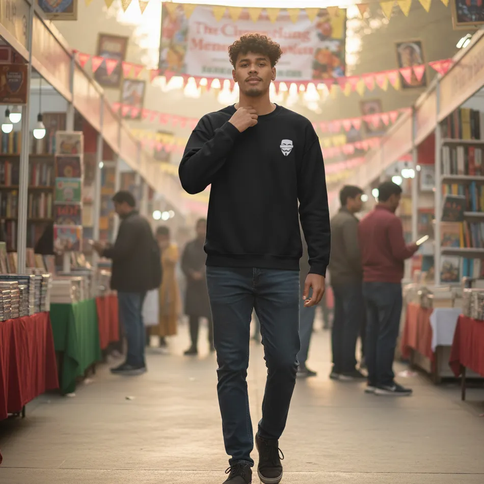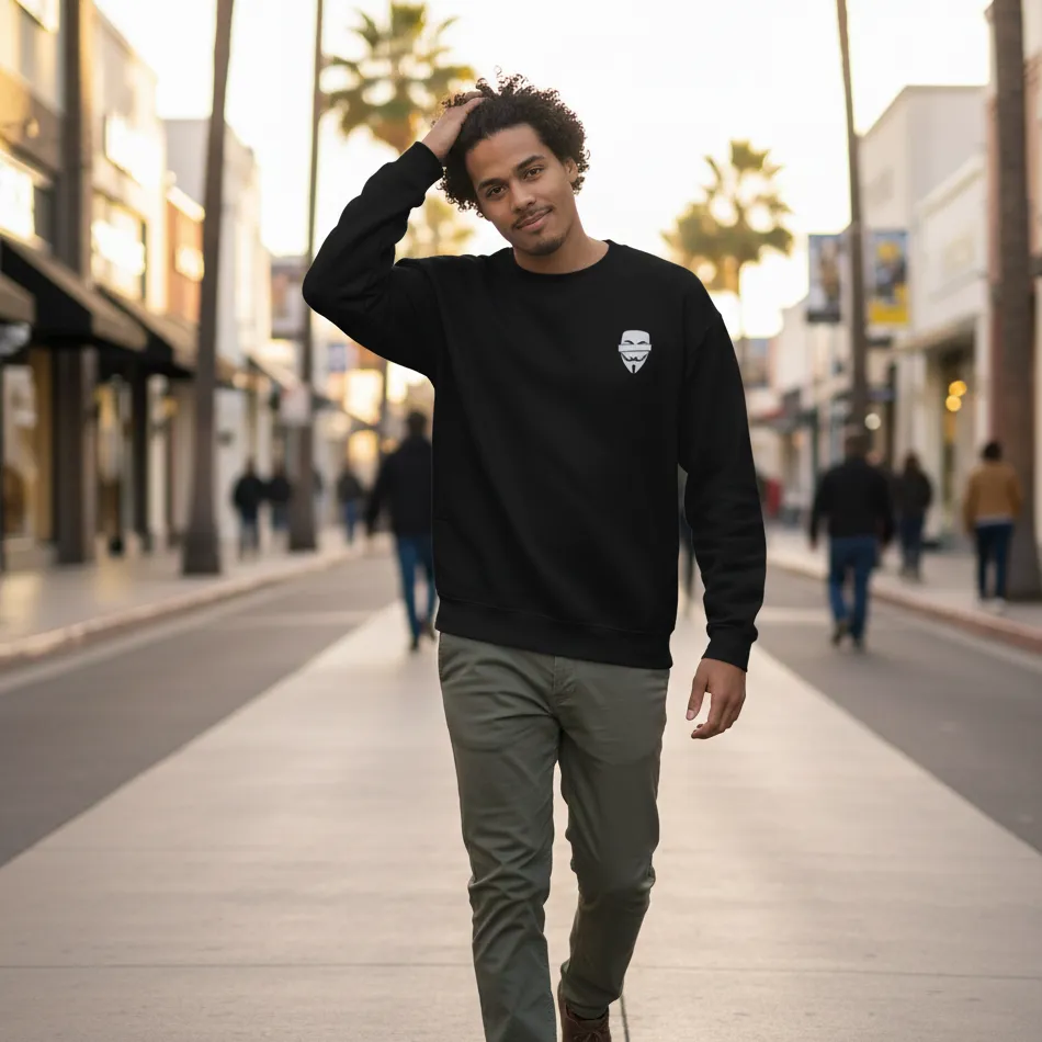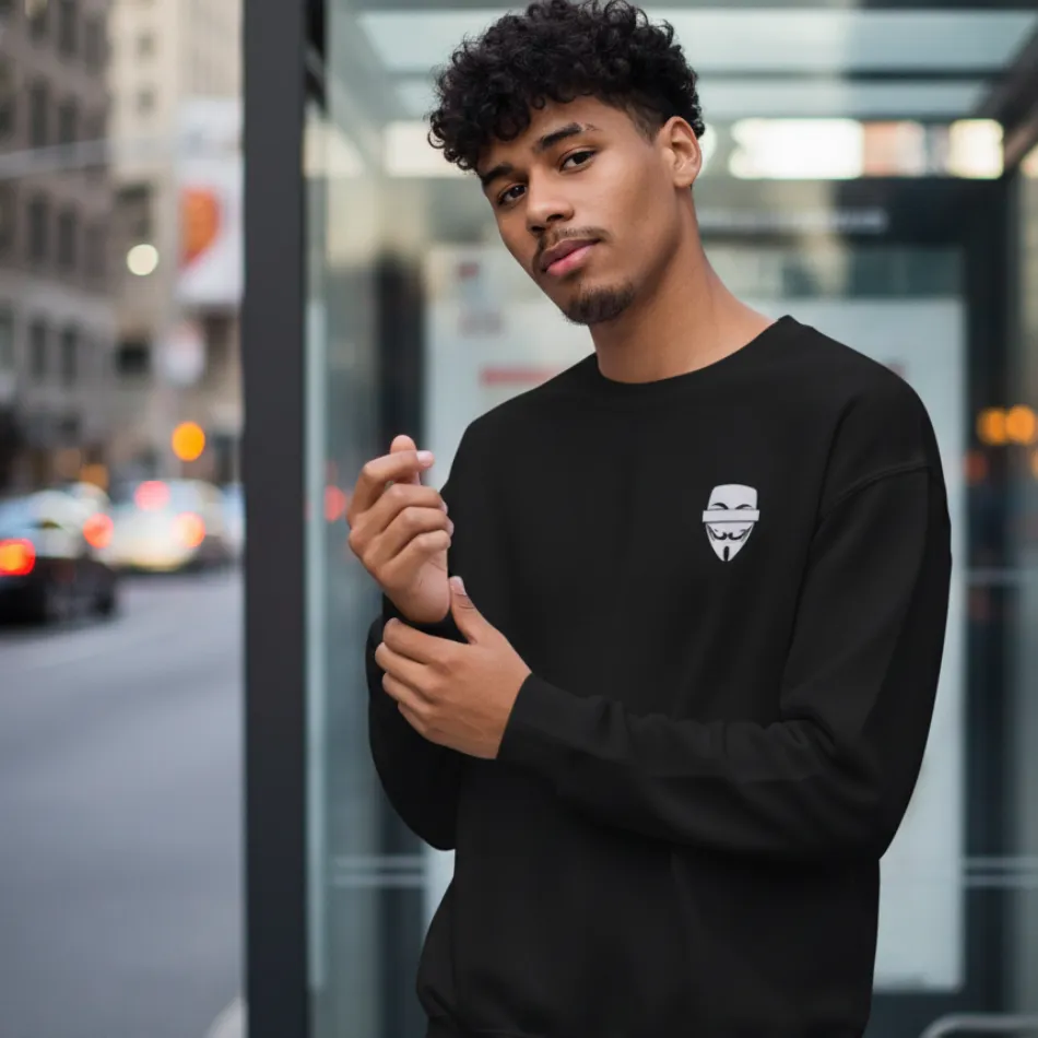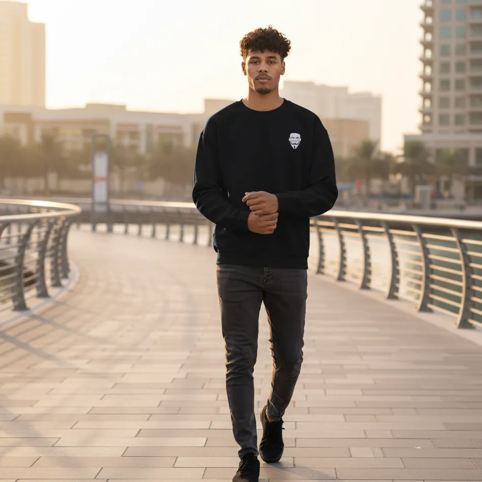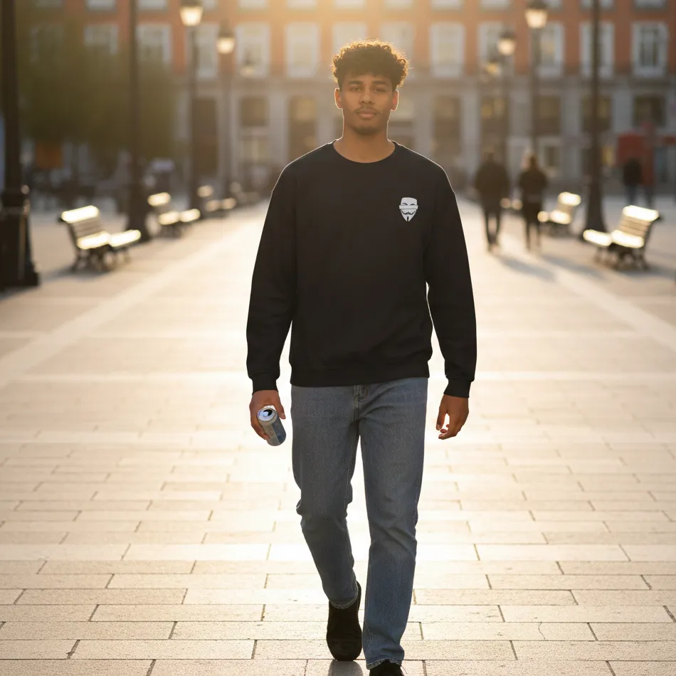 Money heist inspired black sweatshirt for men featuring a powerful Bella Ciao mask graphic inspired by the famous Money Heist series.