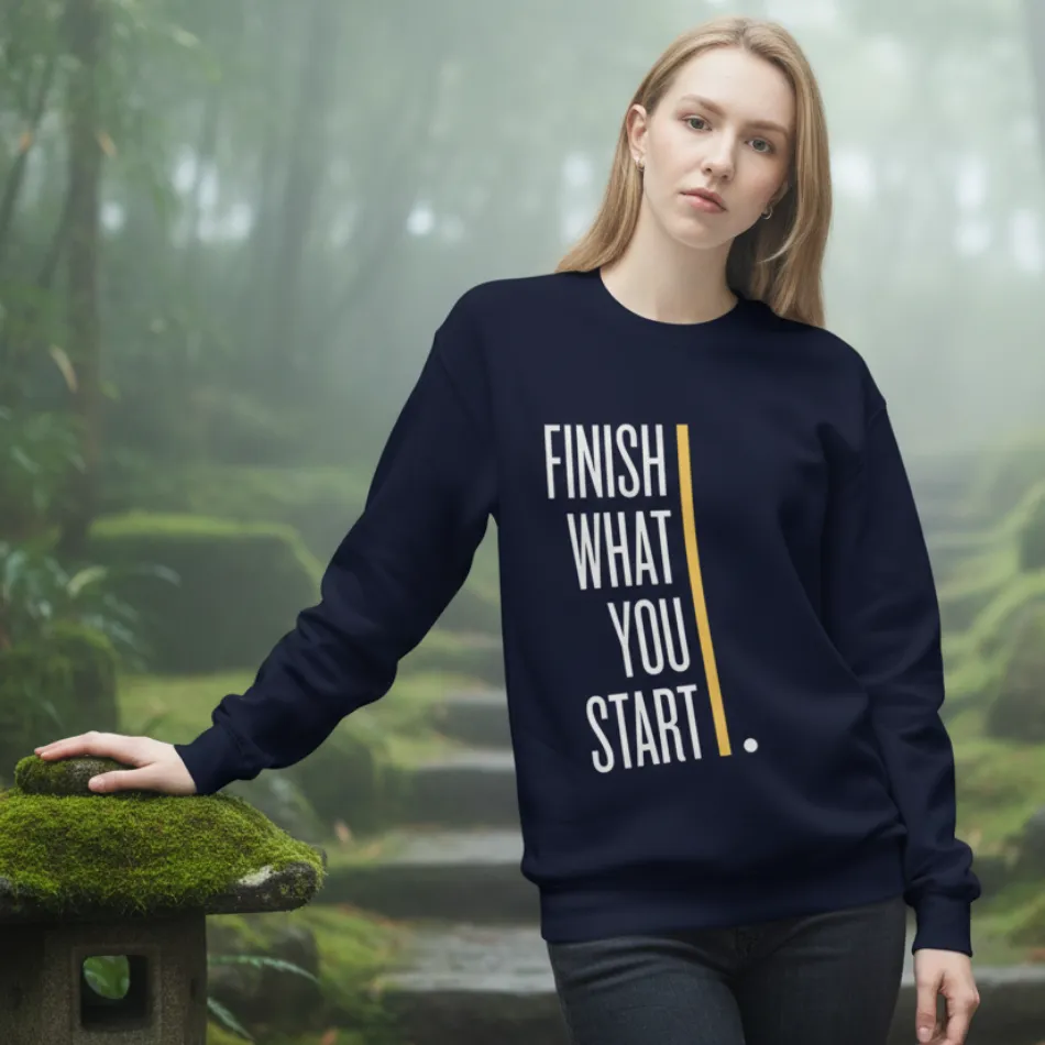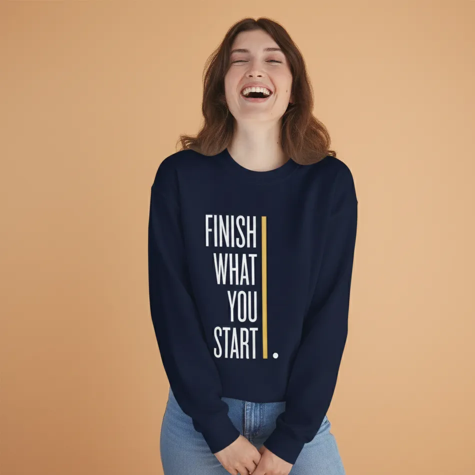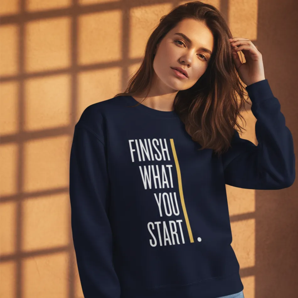 Motivational Text Graphic Navy Sweatshirt for Women | “Finish What You Started”