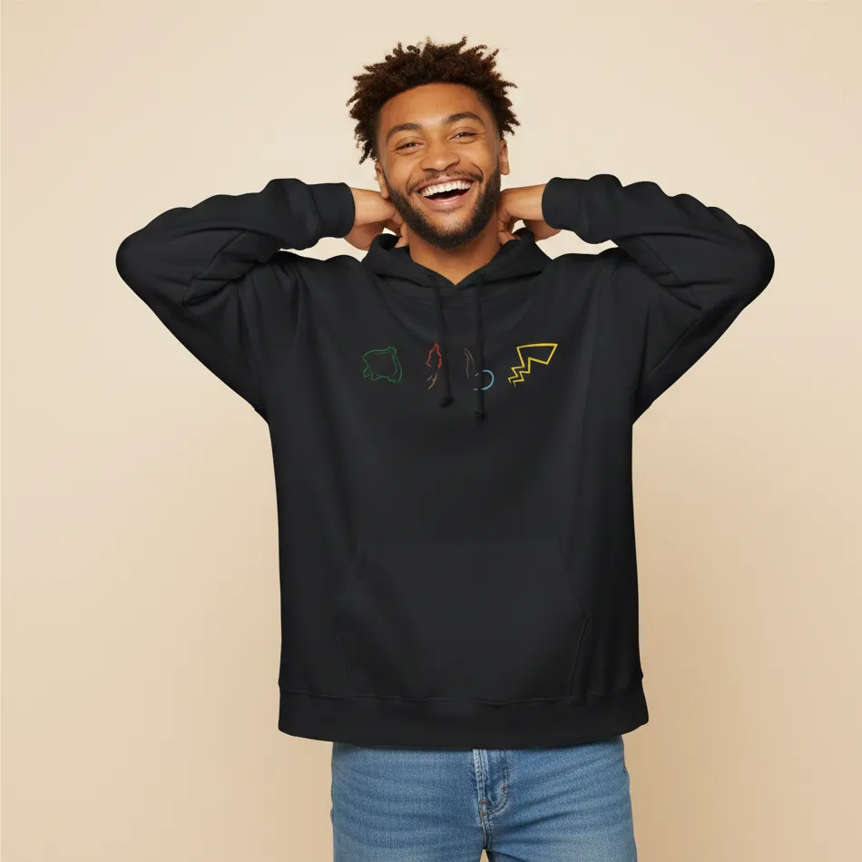 Pikachu inspired black hoodie for men designed with a playful Pokémon-style graphic that brings nostalgic cartoon vibes and modern streetwear comfort together.