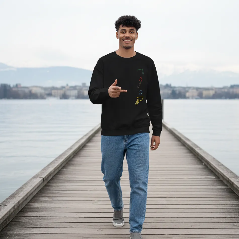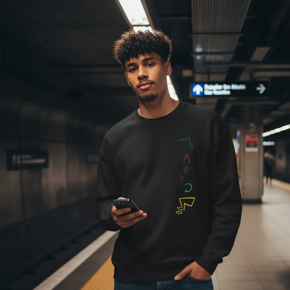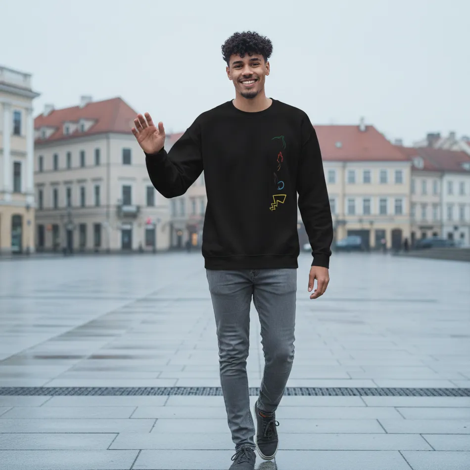 Pokemon Pikachu inspired black sweatshirt for men designed with a lively cartoon graphic of the famous Pokemon character, blending playful energy with modern everyday comfort.