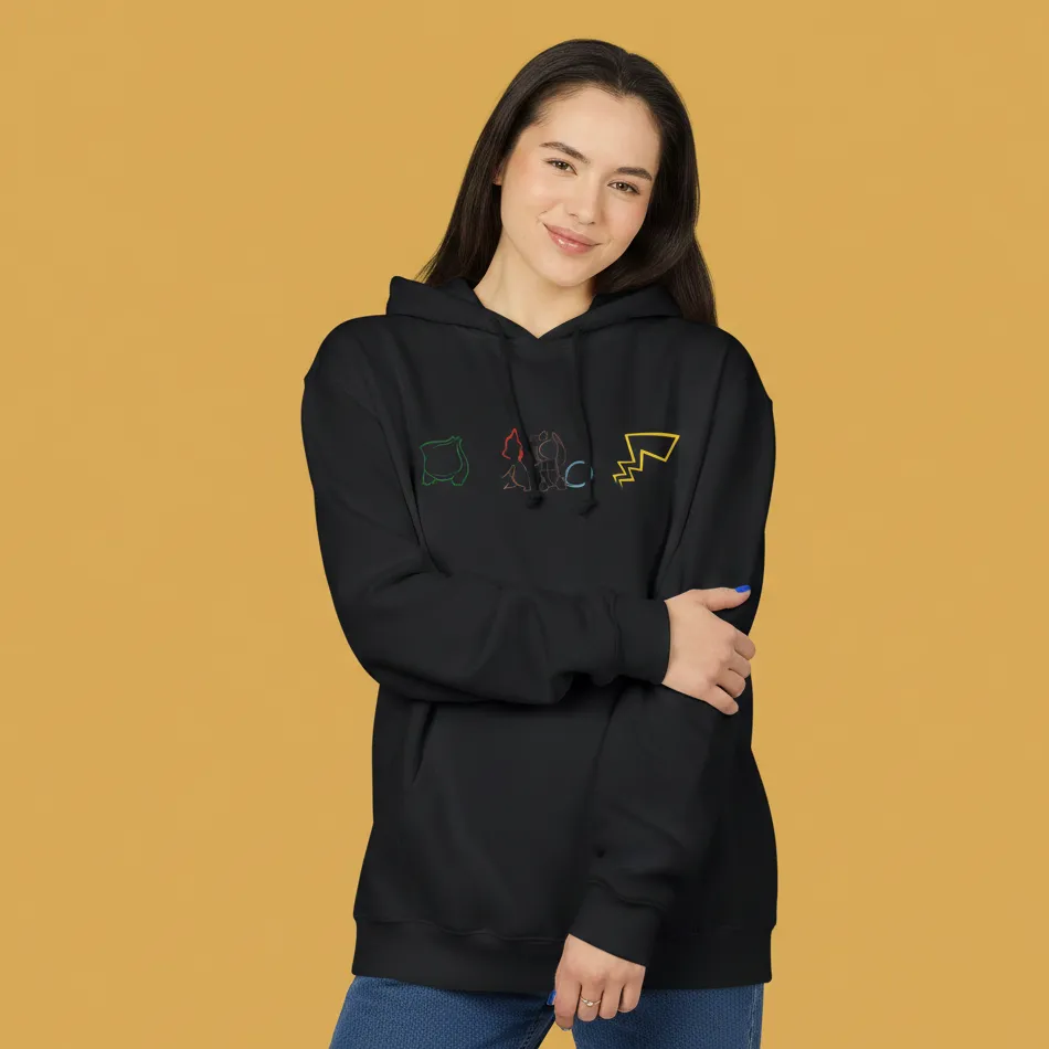 Pokémon Pikachu tail inspired black hoodie for women designed with a minimalist tail logo graphic inspired by the iconic Pokémon character.