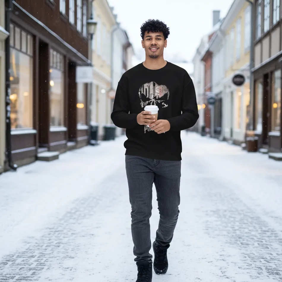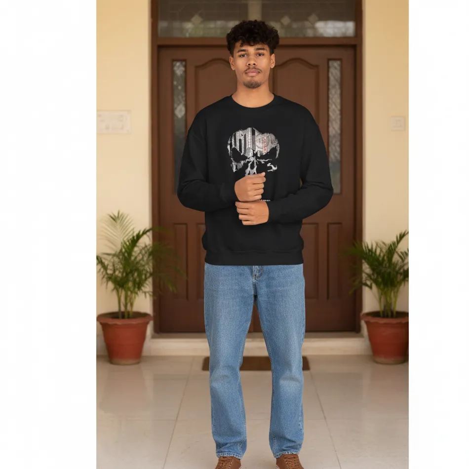 Punisher inspired black sweatshirt for men designed with a bold graphic inspired by the popular Call of Duty game, combining edgy streetwear style with modern comfort.