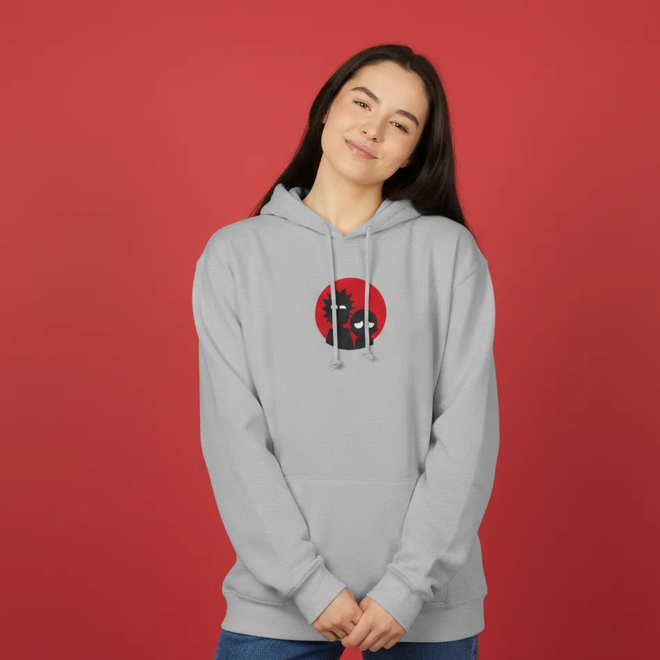 Rick and Morty inspired grey hoodie for women designed with a cartoon graphic inspired by the iconic animated series, blending playful character energy with modern comfort.