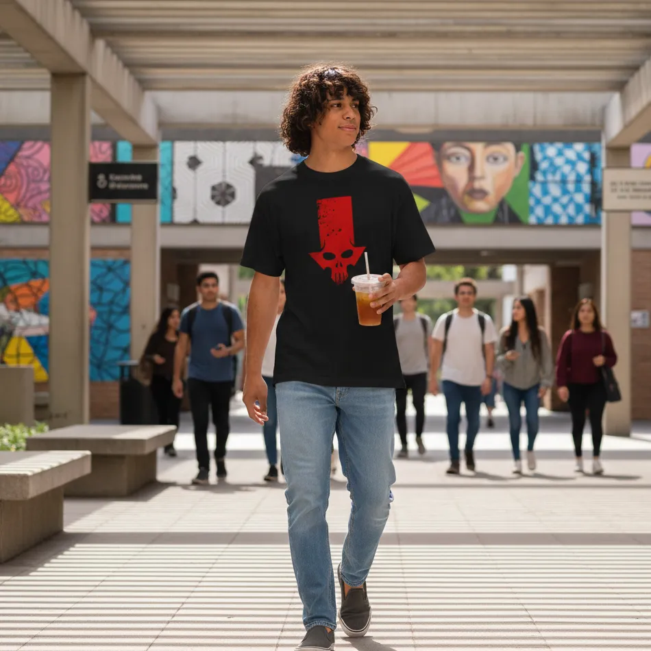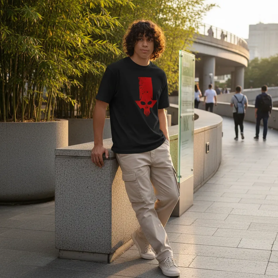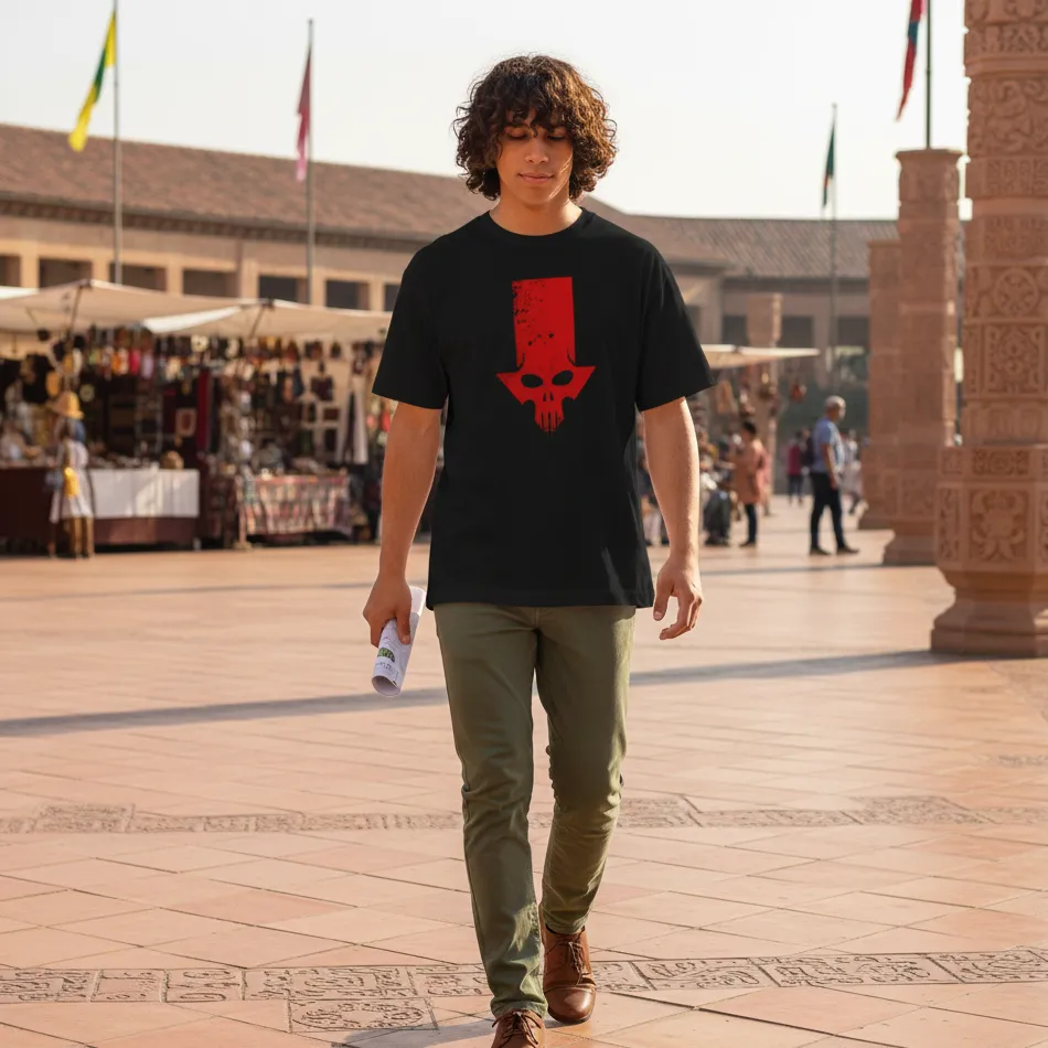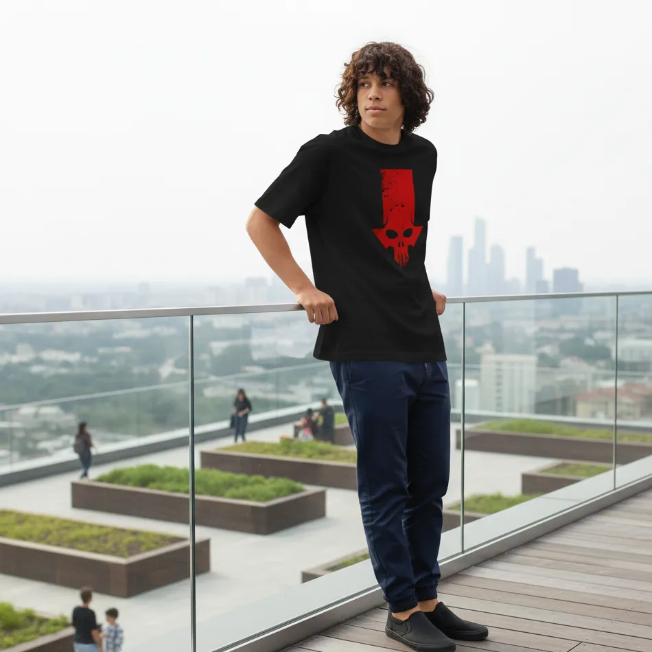 • Red Skull villain-inspired graphic with high visual impact