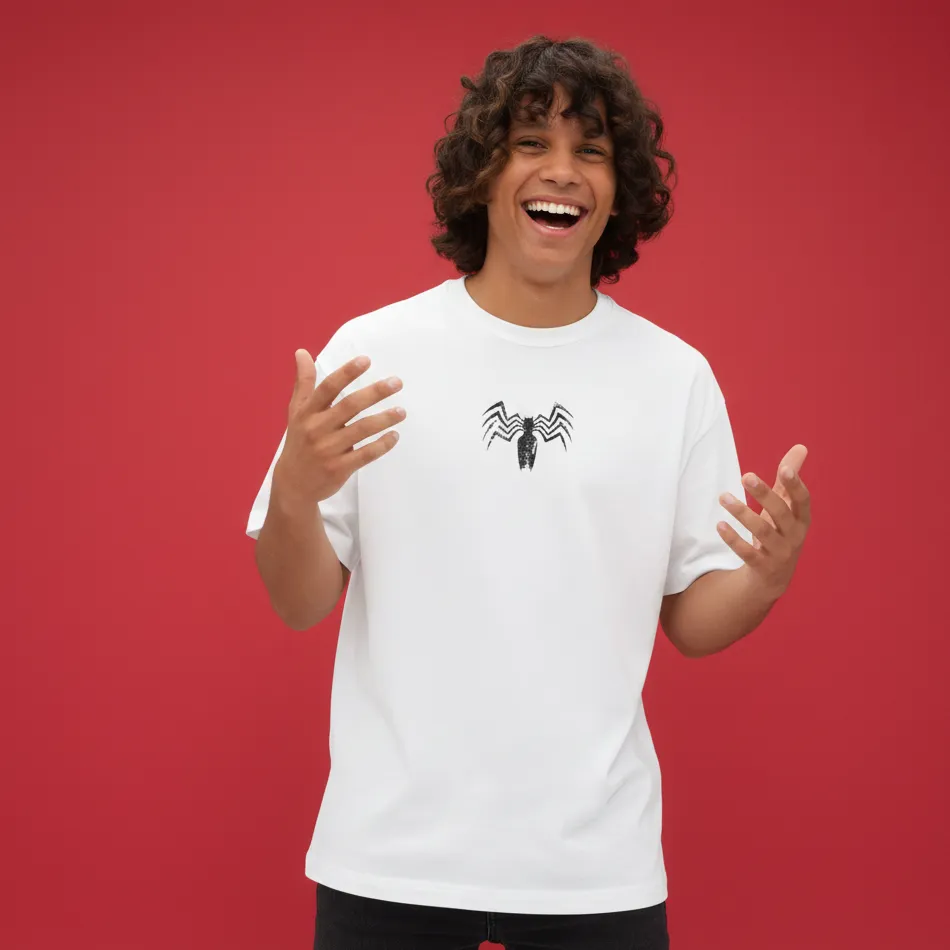 Inspired by the dark and powerful energy of Venom from Marvel Comics, this Venom inspired beige oversized t-shirt brings fearless attitude into modern streetwear. The striking spider graphic symbolizes strength, rebellion, and raw power — made for those who stand out.